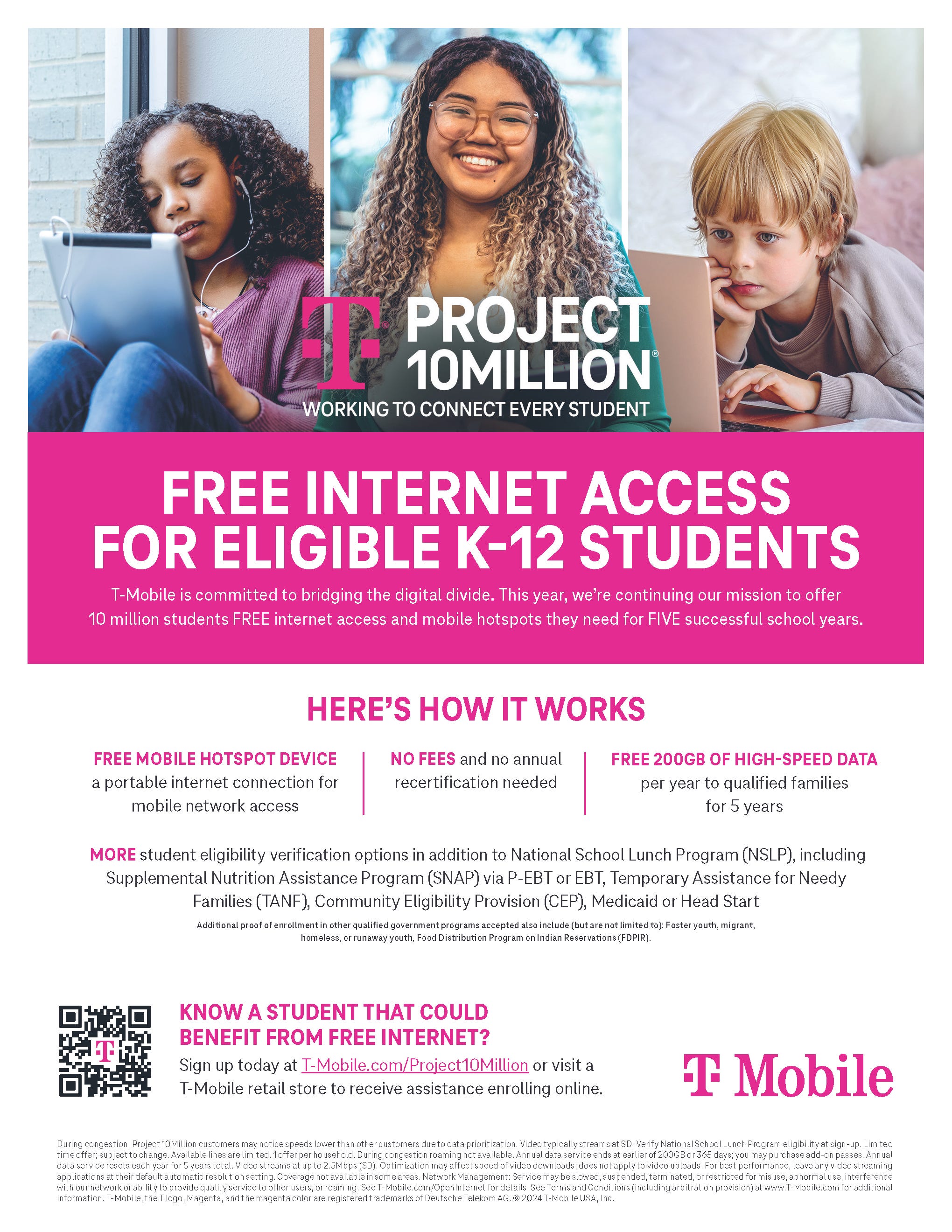 Free Internet for Students – Free mobile hotspot device and 200GB of high-speed data per year for income-eligible K-12 students Check out the flyer attached and find out more and apply here